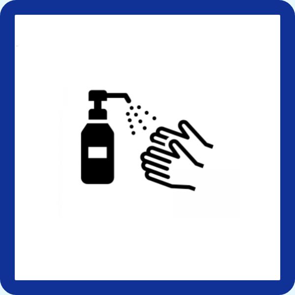 入口、教室手前、トイレの石鹸の隣等、考えられる場所全てに消毒ジェル、スプレーを設置しております。